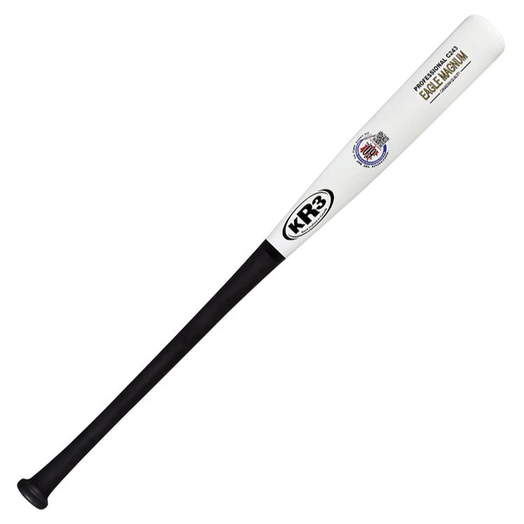 Made from our finest hand selected Maple billets, superior in bending abilities, resistant to twist and lower splitting properties. A closed grain wood coming from only our best suppliers that does not flake, thus providing higher durability. Every billet is sorted and graded on structural elements then accurately weighed to ensure excellent model consistency, especially on large barrel models. The Eagle Magnum is strengthened with fiberglass biaxial sleeving applied with our special blend of Rock Resin epoxy which was designed by the President of KR3 with over 45 years of experience in making baseball bats and launched in 2013. It was designed to provide excellent quality at this price point. All Eagle Magnums come with a 60 Day warranty against the manufacturer’s defect. In-house lab testing continually monitors models for exceptional performance and durability. Handcrafted Canadian Quality in each and every bat.